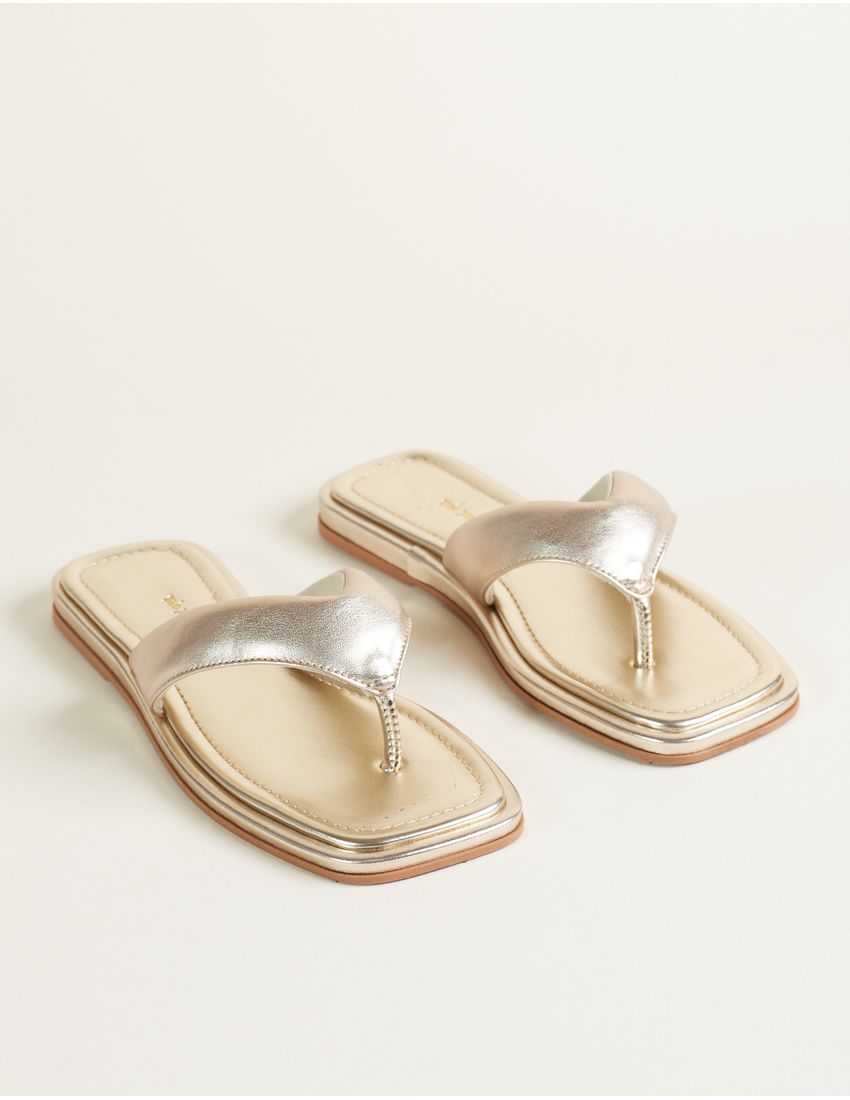 Flatform Couro Duas Tiras Com Aplicações Ilhoses Metal - Off White