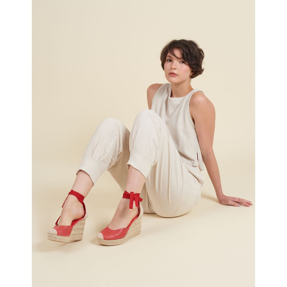 Anabela Couro detalhe Biqueira Natural - Melancia