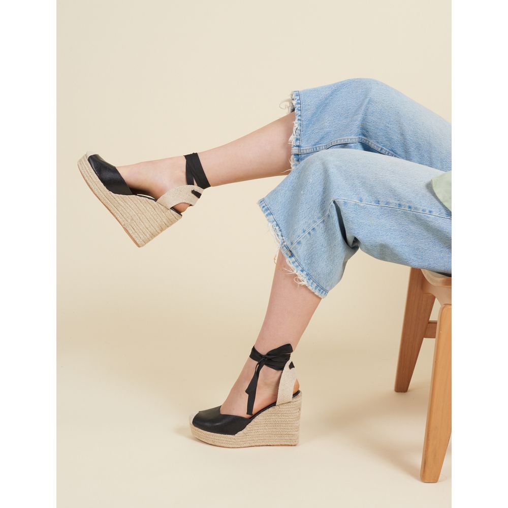 Essa plataforma anabela é um clássico com um toque moderno! O cabedal de couro com detalhe de biqueira natural e fechamento de amarração na cor do cabedal trazem sofisticação. A cepa é forrada por corda natural, completando o visual elegante.