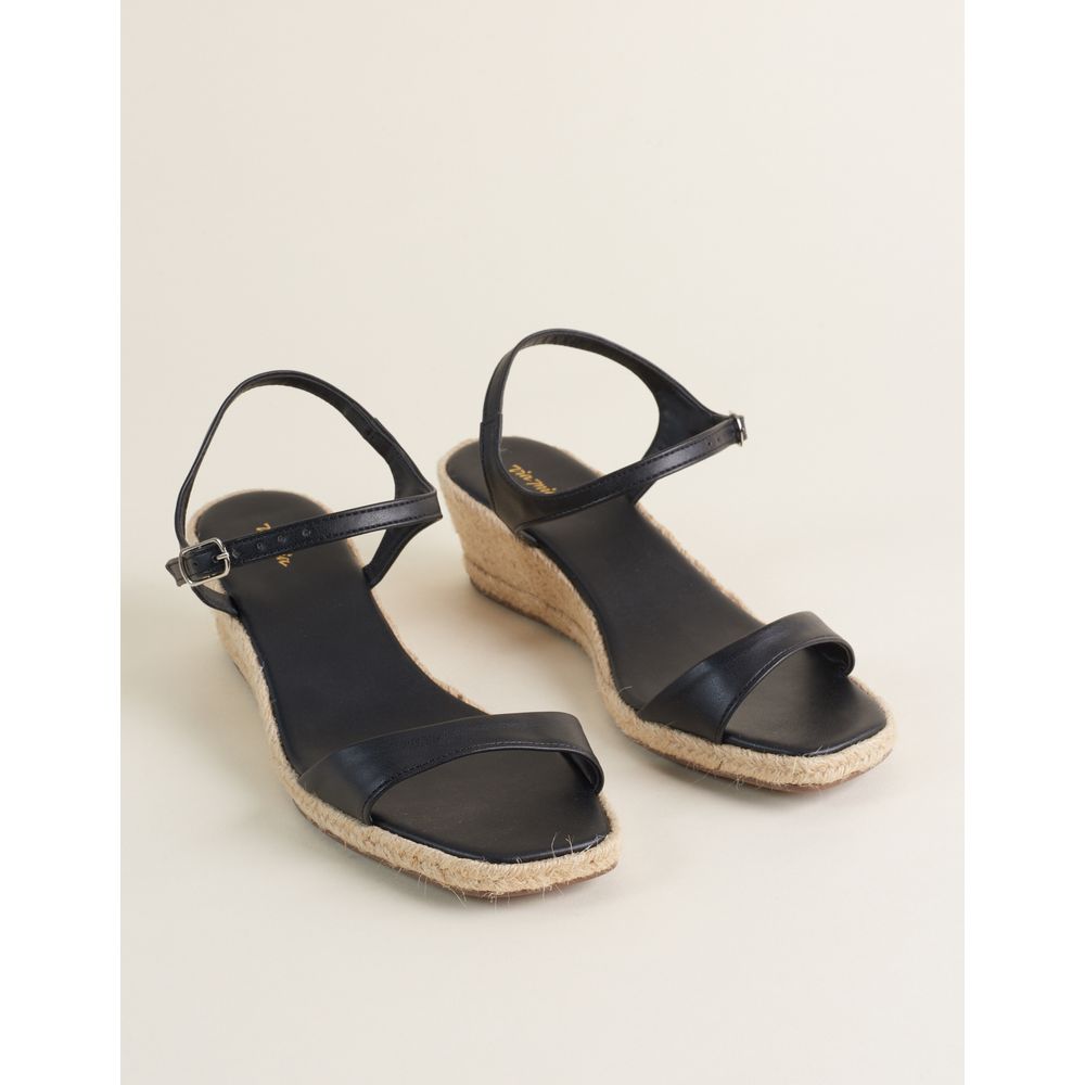 Anabela com cabedal em material soft, palmilha no mesmo tom, fechamento em fivela e salto forrado em corda natural. Medidas: salto 5cm. Perfeita para produções frescas e descomplicadas.