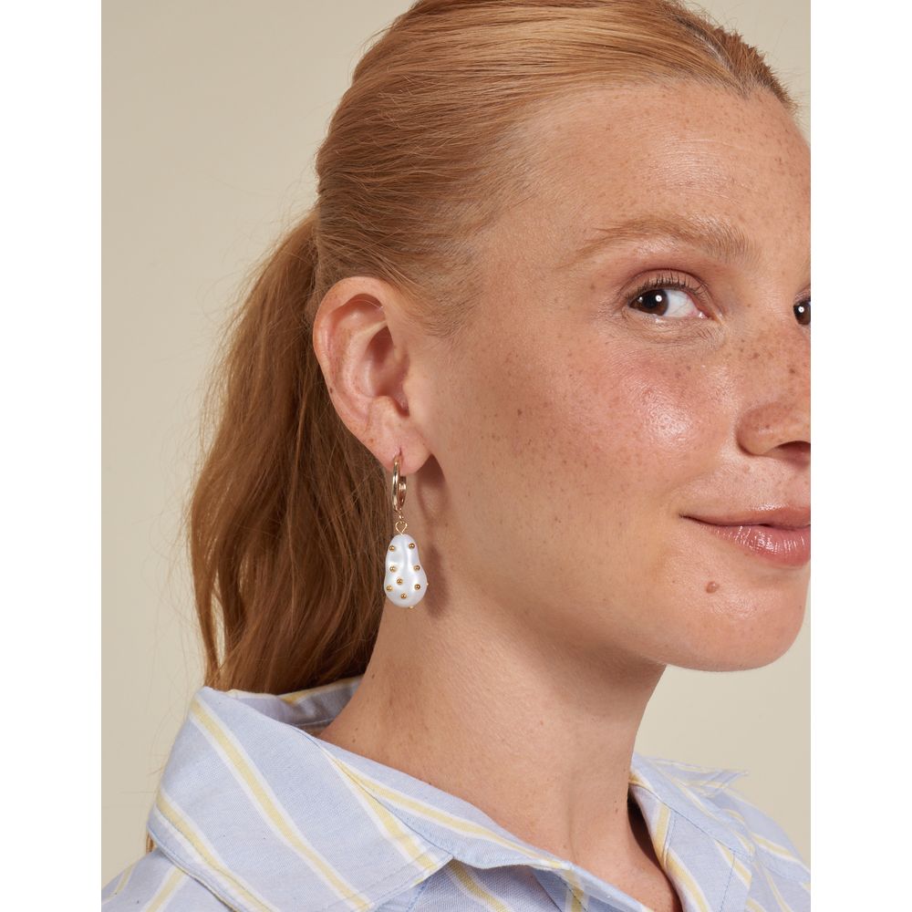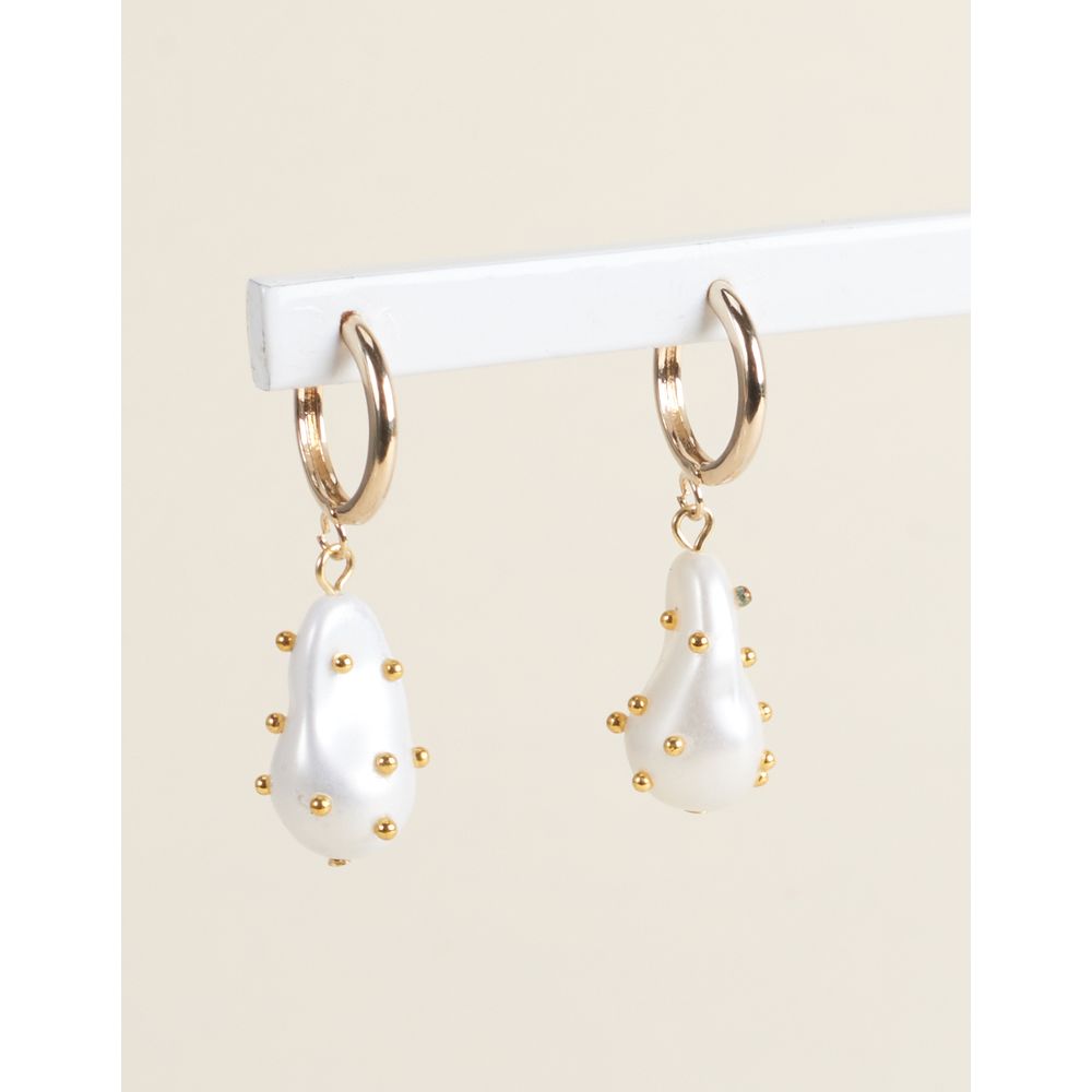 Argola pequena em metal com detalhe de pérola e aplicações de bolinhas metálicas. Um clássico delicado para o dia a dia.