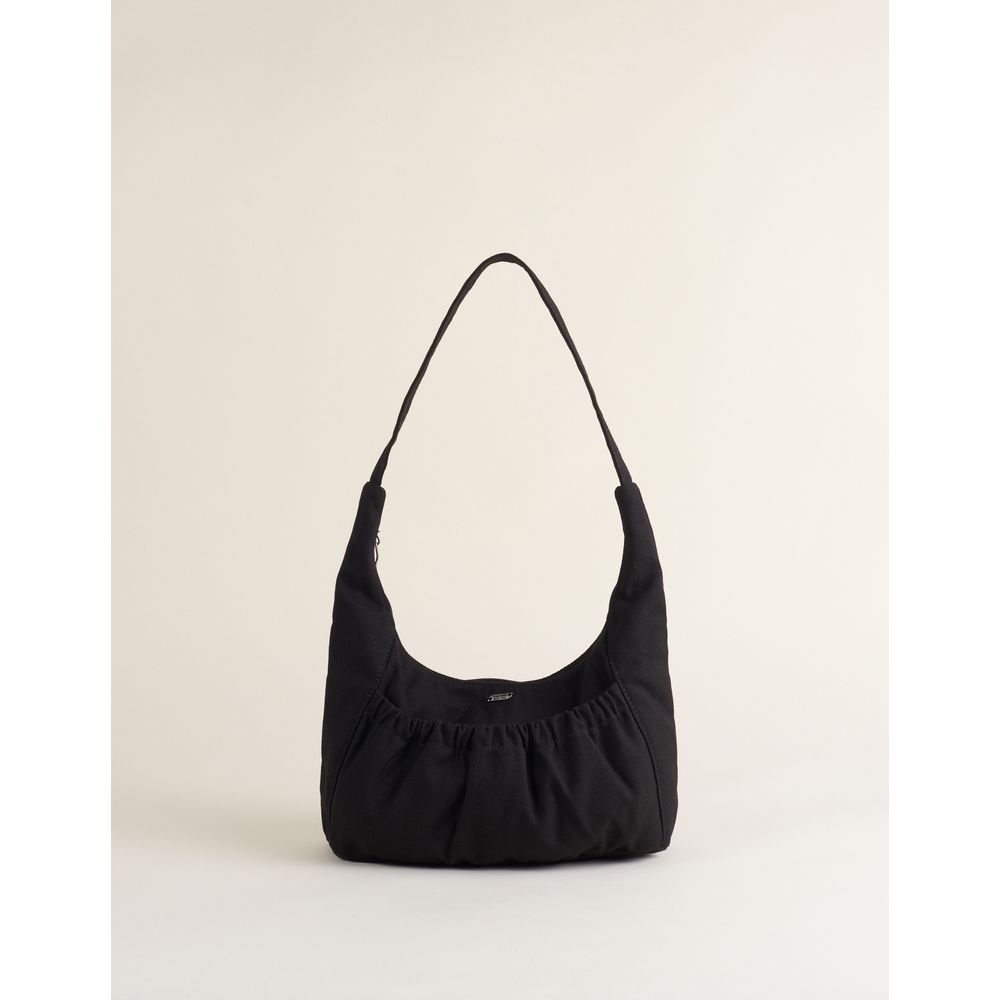 Bolsa Baguete Em Lona Com Bolso Franzido - Preto - U
