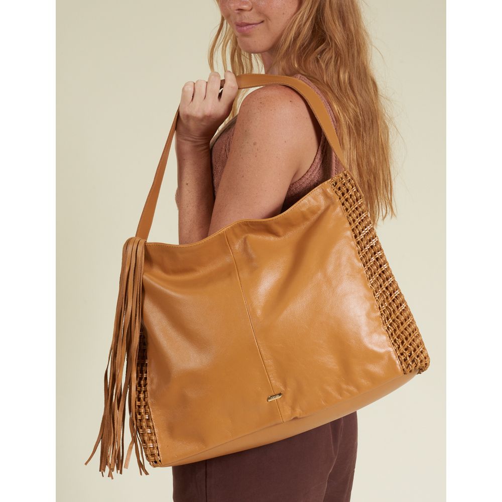 Bolsa Couro Com Trama Vazada - Caramelo - U