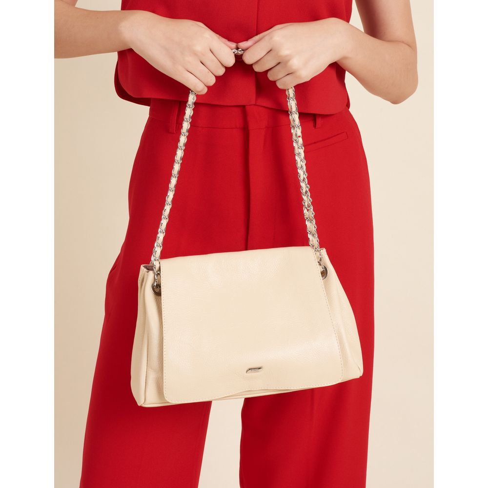 Bolsa Couro Média Com Tampa Alça Corrente Metal - Creme - U