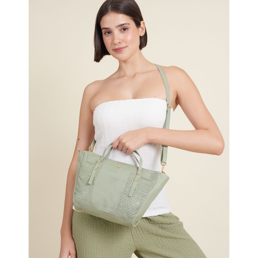 Bolsa Couro Média Textura Furos - Verde Cha - U