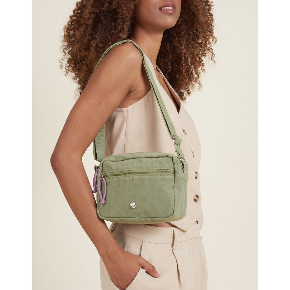 Essa bolsa retangular de lona com um bolsinho frontal é puro estilo! Os fechos de zíper têm a mesma cor da lona, o que deixa tudo super combinando. Os puxadores de cadarço bicolor dão um charme a mais e a alça tiracolo também é feita desse mesmo cadarço, então é super confortável demais de usar. Tem forro interno e a assinatura Via Mia em metal na frente, que são detalhes que fazem toda a diferença. Material: lona. Nas cores: camel, preto e verde cha. Medidas: 14 cm de altura, 20 cm de largura e 7 cm de profundidade.