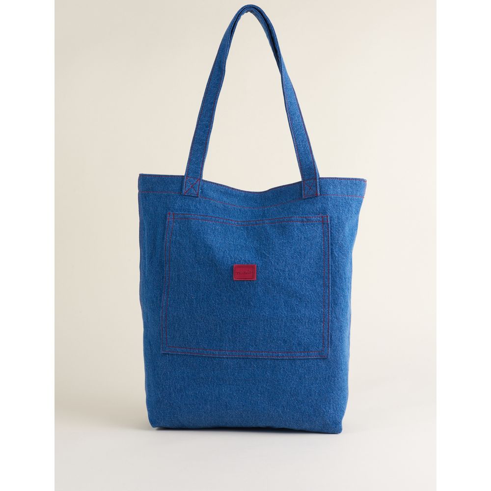 Bolsa Em Jeans Com Costura Contrastante - Jeans Escuro - U