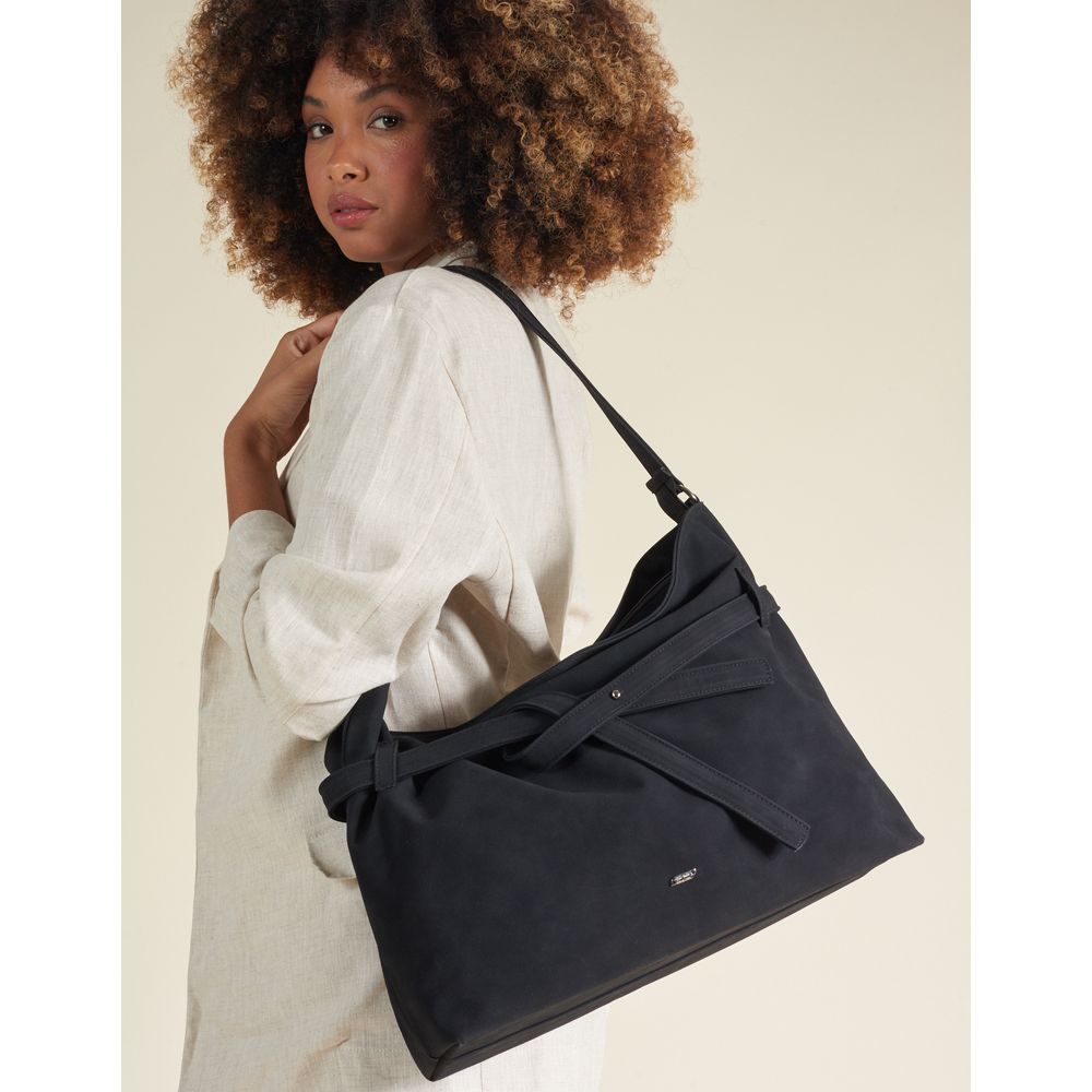 Bolsa Grande com Alça de Ombro e Detalhe Estonado - Preto - U