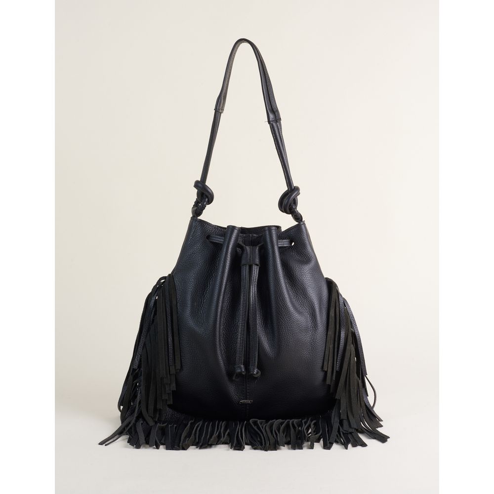Bolsa Grande Couro Com Franjas - Preto - U