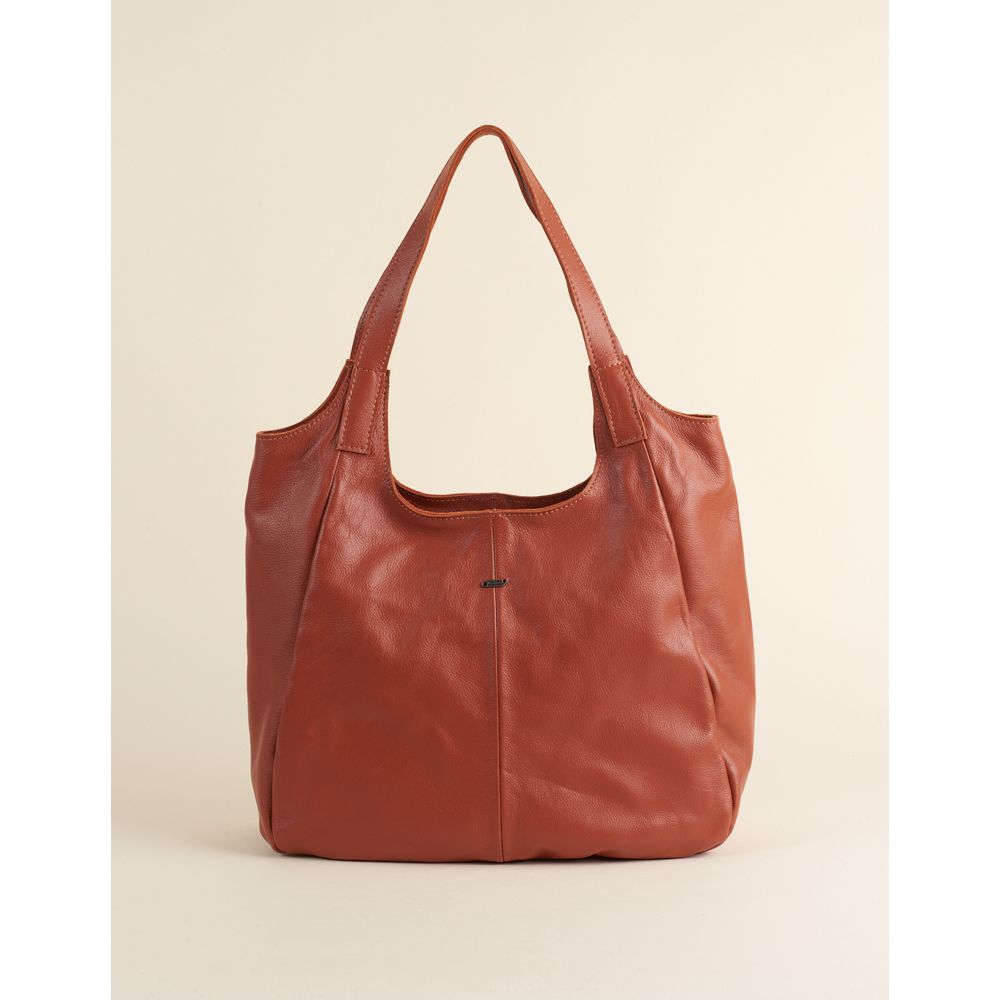 Bolsa grande em couro macio, forrada e com fechamento em zíper de nylon. Assinatura Via Mia em plaquinha central. Medidas: 29cm (A) x 35cm (L) x 13cm (P). Com design clean e funcional, é a escolha certa para todos os dias.