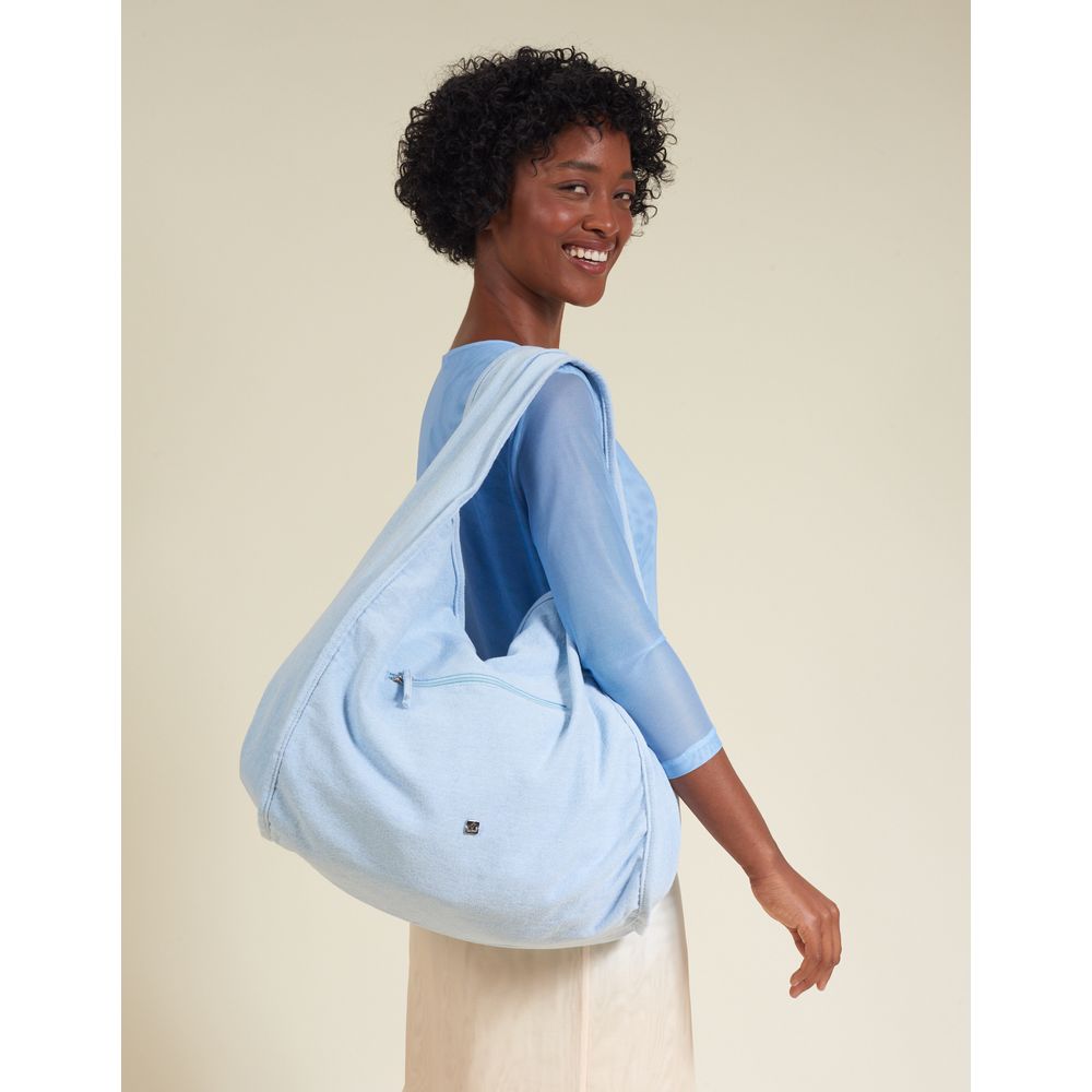 Bolsa em jeans com detalhe de debrum e drapeado lateral. Fechamento em zíper e bolso externo. Medidas: 28cm (A) x 39cm (L) x 30cm (P). Estilo urbano e ideal pra quem gosta de sair carregando o mundo por aí.