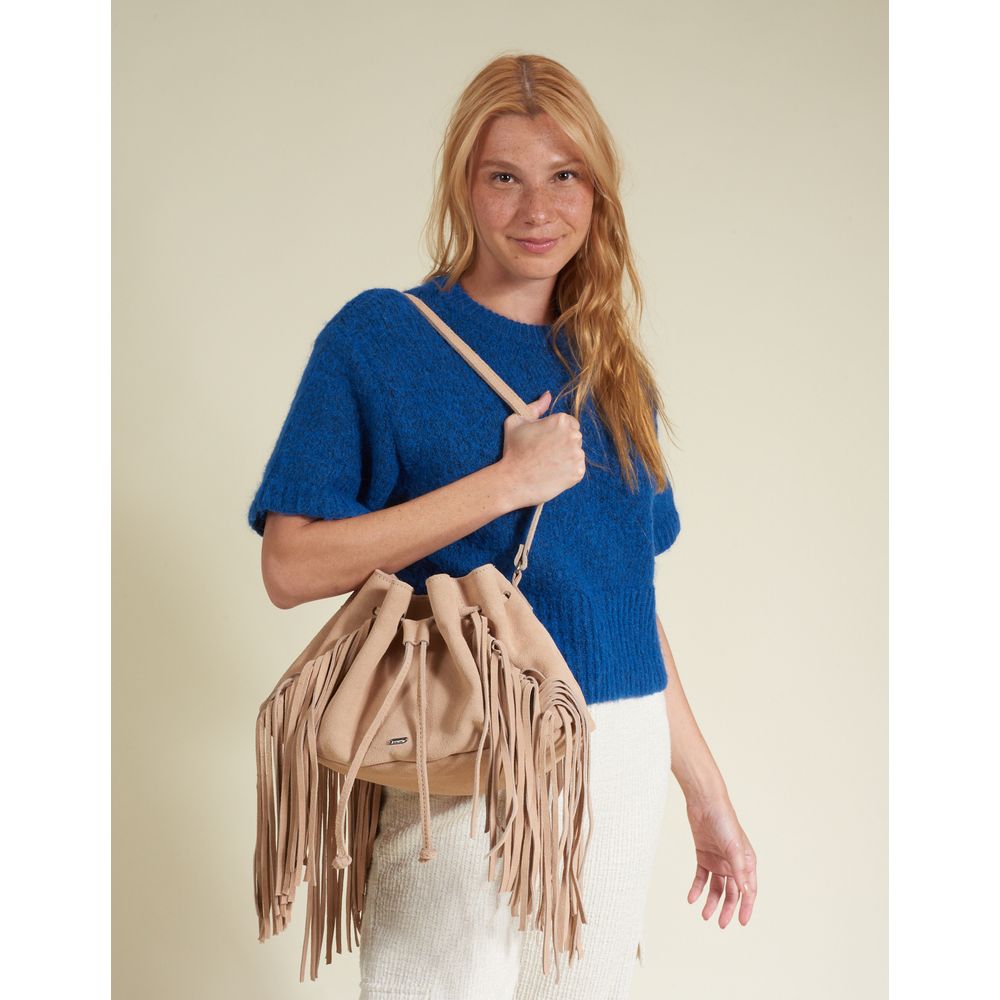 Bolsa Média Camurça Com Franjas - Amendoa - U