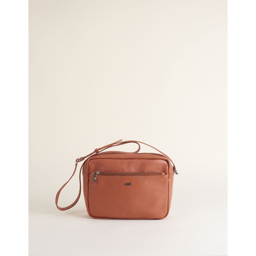 Bolsa Média Couro Bolso Frontal - Camel - U