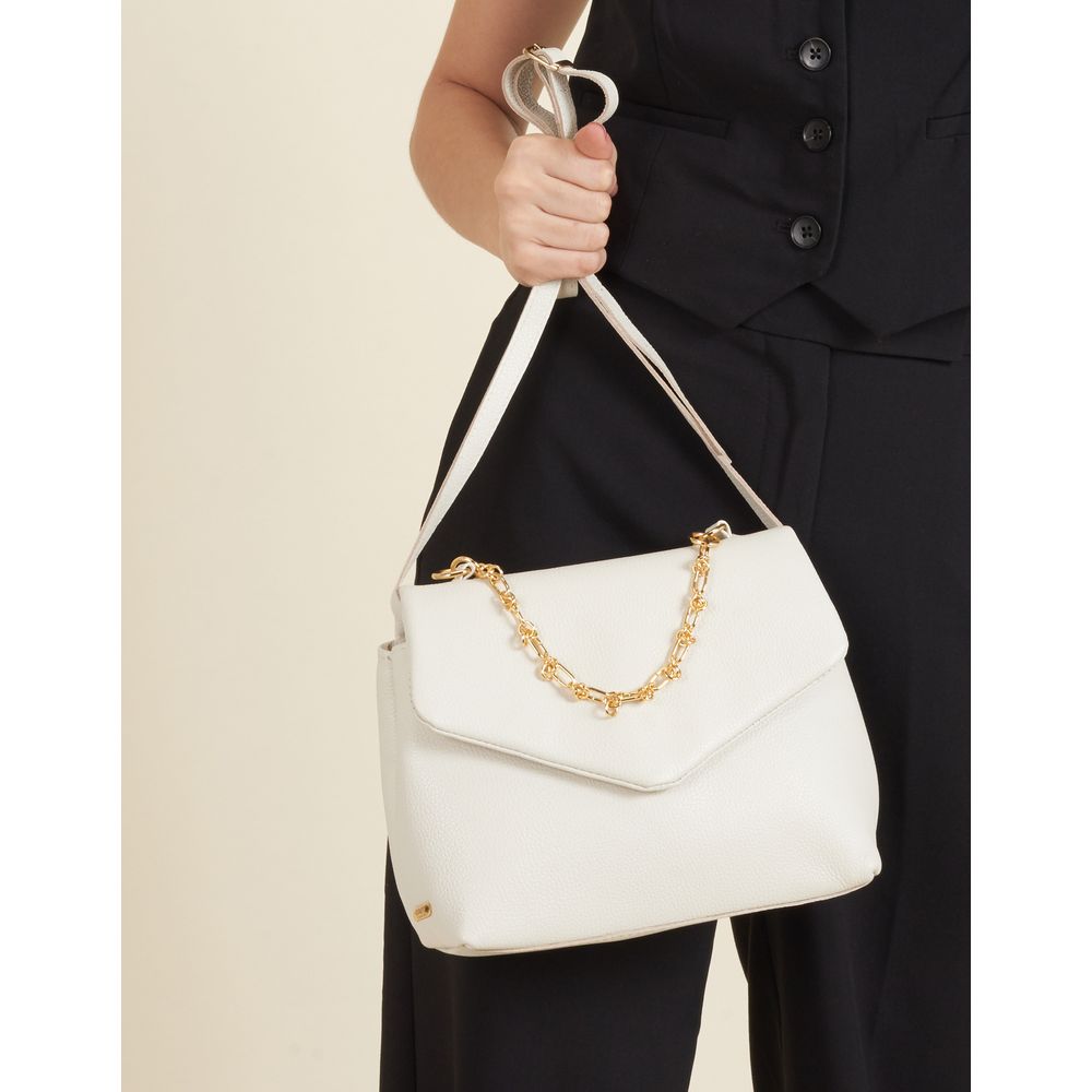 Bolsa Média Couro Tampa Alça Corrente - Off White - U