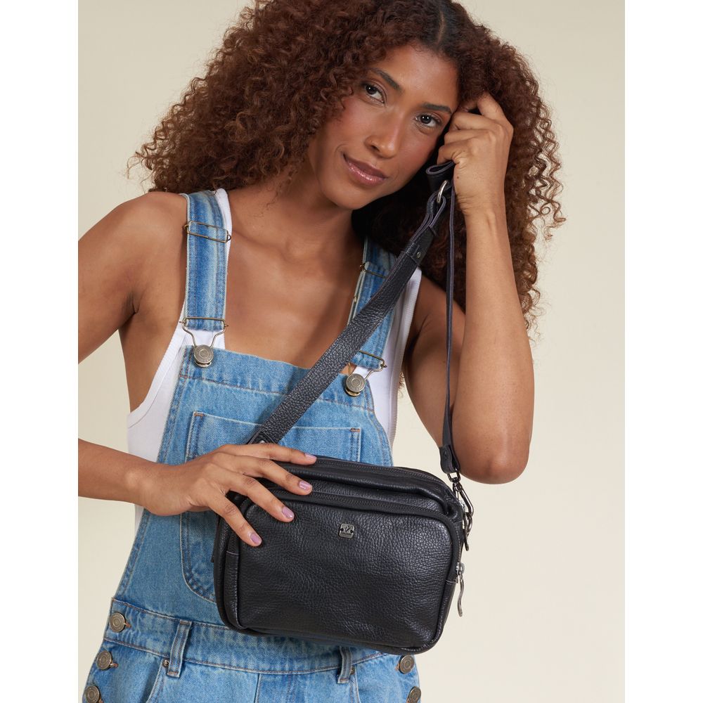 Bolso frontal com zíper é tudo! Além de ser uma bolsa média com couro floater, ela é forrada, tem fechamento de zíper metálico, alça transpassada com regulagem e puxador de metal em prata velho. Vem nas cores coringas preta, caramelo, areia e jeans, e laranja pra quem busca um toque de cor no look. Altura: 19cm | Largura: 25cm | Profundidade: 9cm
