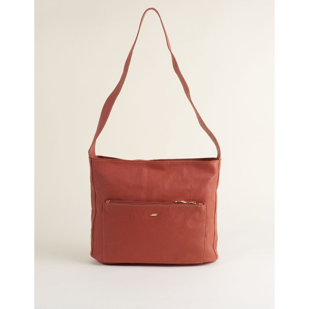 Bolsa Média Em Couro Com Bolso Frontal - Camel - U