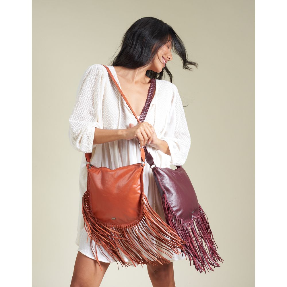 Bolsa Média Em Couro Com Franja - Berinjela - U