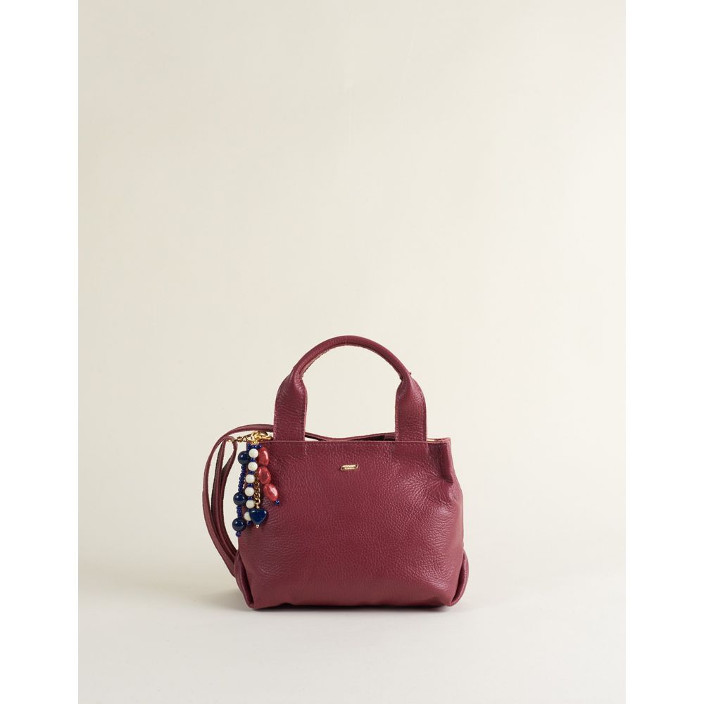 Bolsa Média Em Couro Com Penduricalho - Bordo - U