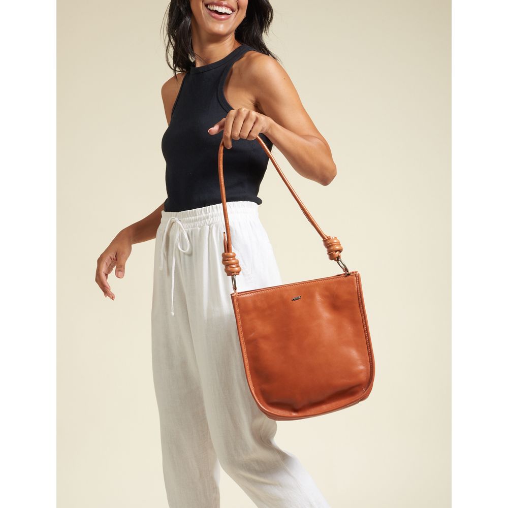 Bolsa Média Em Couro E Argola - Camel - U