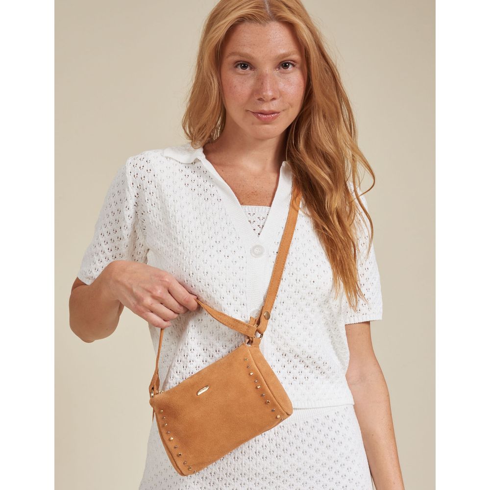 Bolsa Pequena Couro Camurça Com Rebites - Caramelo - U