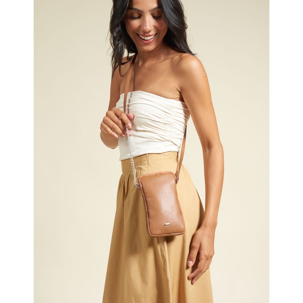 Bolsa Pequena Couro Com Corrente - Caramelo - U