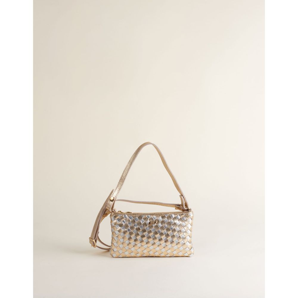 Bolsa Pequena Couro Trançado Metalizado - Ouro Light - U