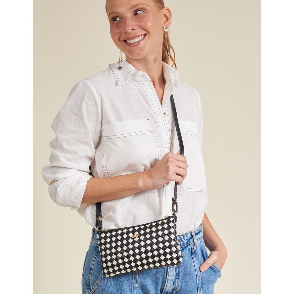 Autêntica e artesanal, essa bolsa adiciona um estilo extra no look. Produzida em couro floater e com corpo em tiras trançadas manualmente. Fechamento em zíper e alça tiracolo regulável. Medidas: 12,5cm (A) x 21,5cm (L)
