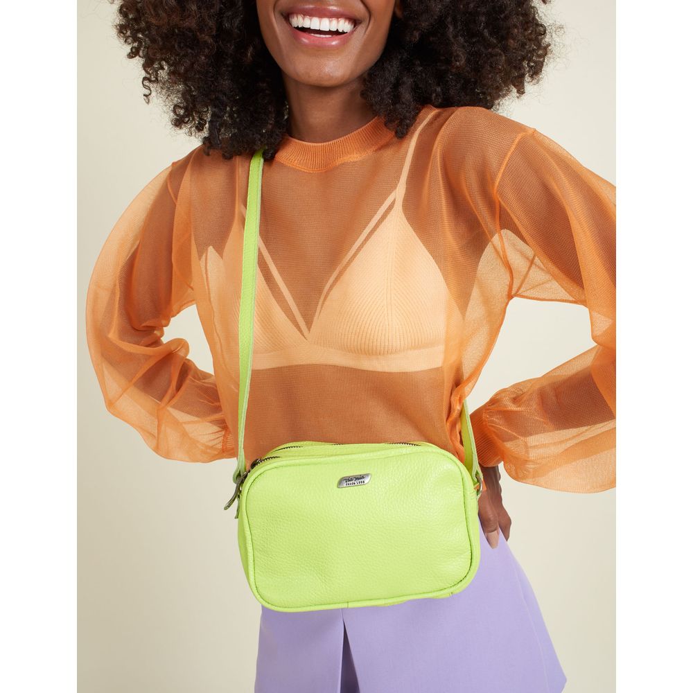 Vocês adoram bolsas com compartimentos, e essa tem compartimento duplo com fechamento de zíper de metal e puxador em prata velho. Além disso, tem forro, alça transpassada com regulagem e plaquinha em prata velho. Além das coringas camel e preta, esse modelo também vem nas cores roxo e verde pra você que não abre mão de cor nos acessórios.