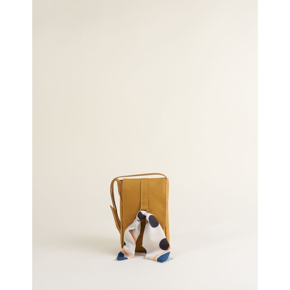 Bolsa Pequena Em Couro Com Lenço Estampado - Mostarda - U