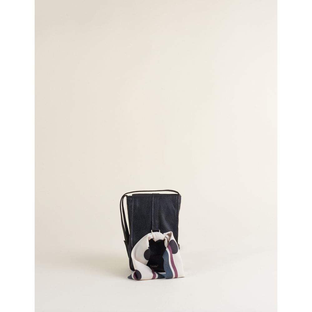 Bolsa Pequena Em Couro Com Lenço Estampado - Preto - U