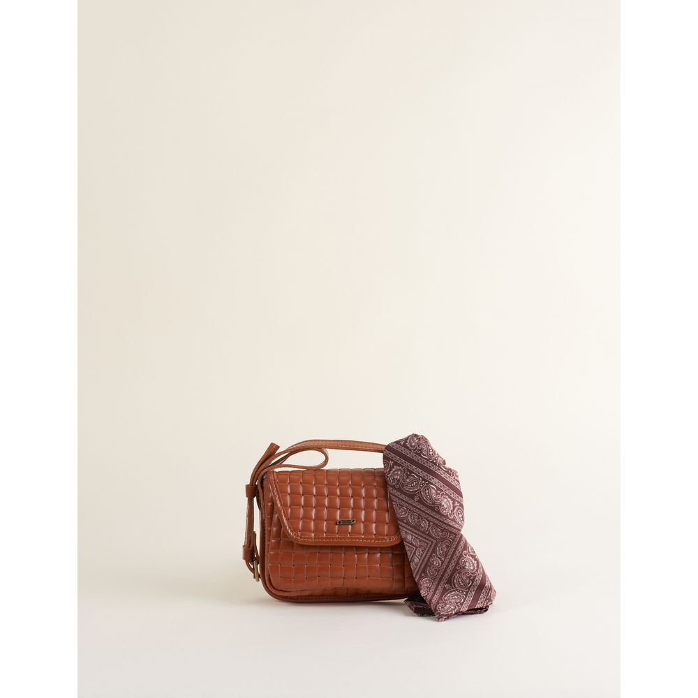 Bolsa Pequena Em Couro Texturizado E Lenço Estampado - Camel - U