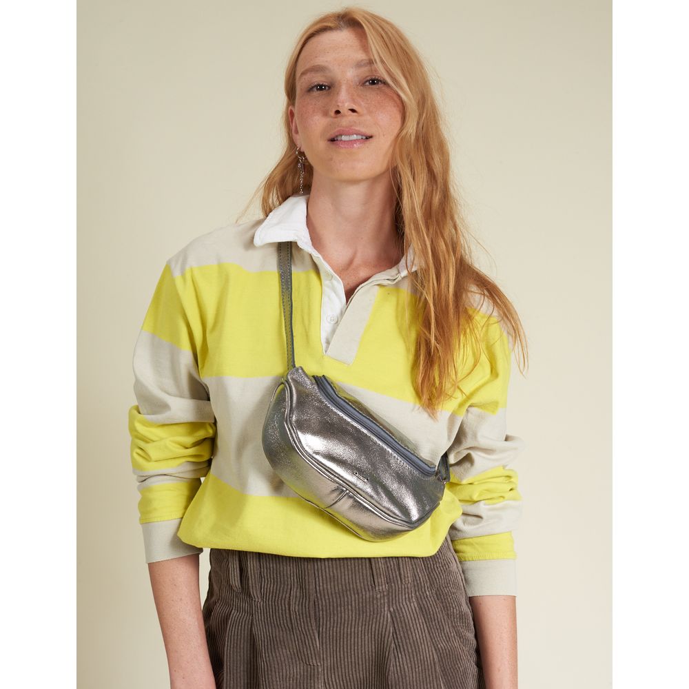 Bolsa Pequena Meia Lua Couro Metalizado - Prata Velho - U