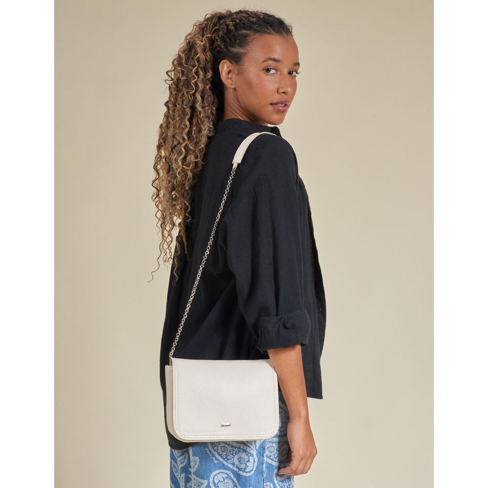 Bolsa pequena retangular e estruturada em couro floater. Possui alça de corrente com mix de banhos níquel e ouro e assinatura Via Mia em metal. Chique e versátil, é o acessório perfeito para elevar qualquer produção.