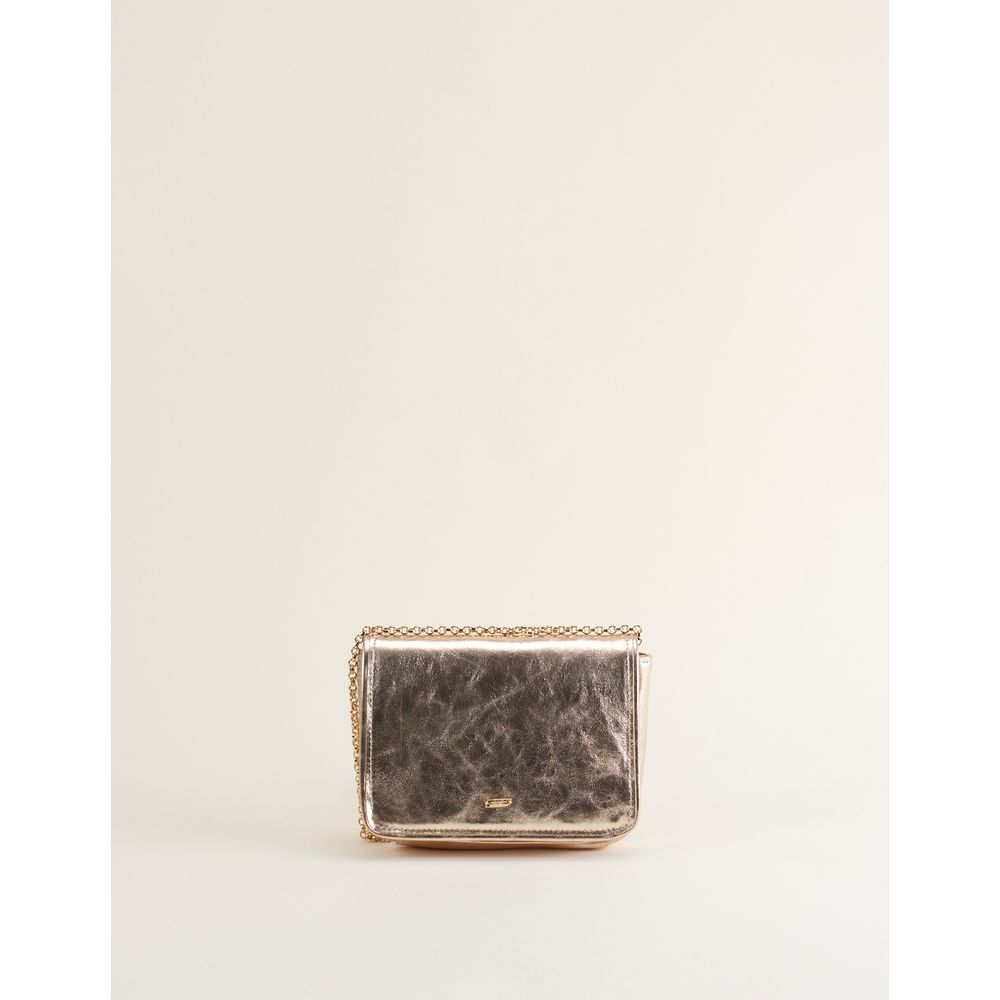 Bolsa pequena retangular e estruturada em couro floater metalizado. Possui alça de corrente com mix de banhos níquel e ouro e assinatura Via Mia em metal. Compacta e luminosa, é o toque perfeito de brilho para elevar qualquer look.