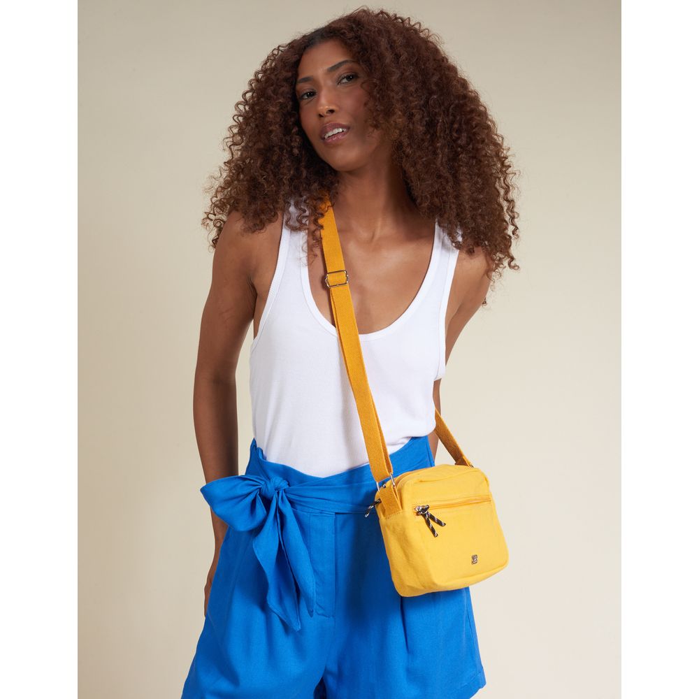 Bolsa Retangular Em Lona Com Bolso Frontal - Amarelo - U