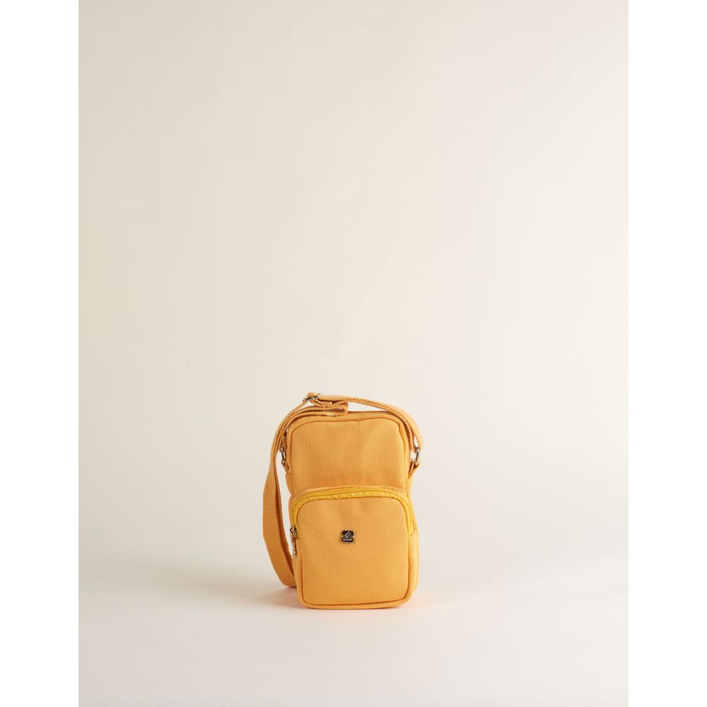 Bolsa tipo crossbody em malha esportiva com bolso frontal, fechamento em zíper e alça de cadarço regulável. Medidas: 20cm (A) x 13cm (L) x 3cm (P). Compacta e leve, perfeita para quem busca praticidade.