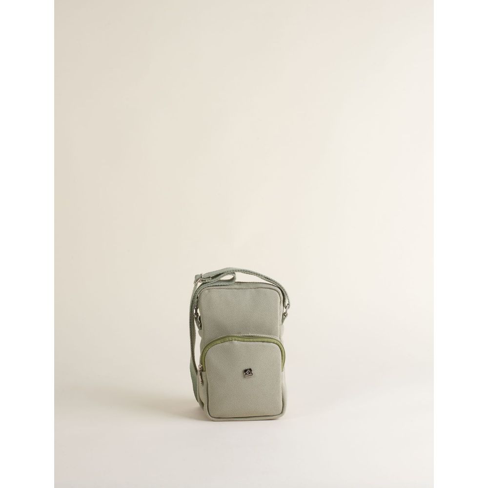 Bolsa tipo crossbody em malha esportiva com bolso frontal, fechamento em zíper e alça de cadarço regulável. Medidas: 20cm (A) x 13cm (L) x 3cm (P). Compacta e leve, perfeita para quem busca praticidade.