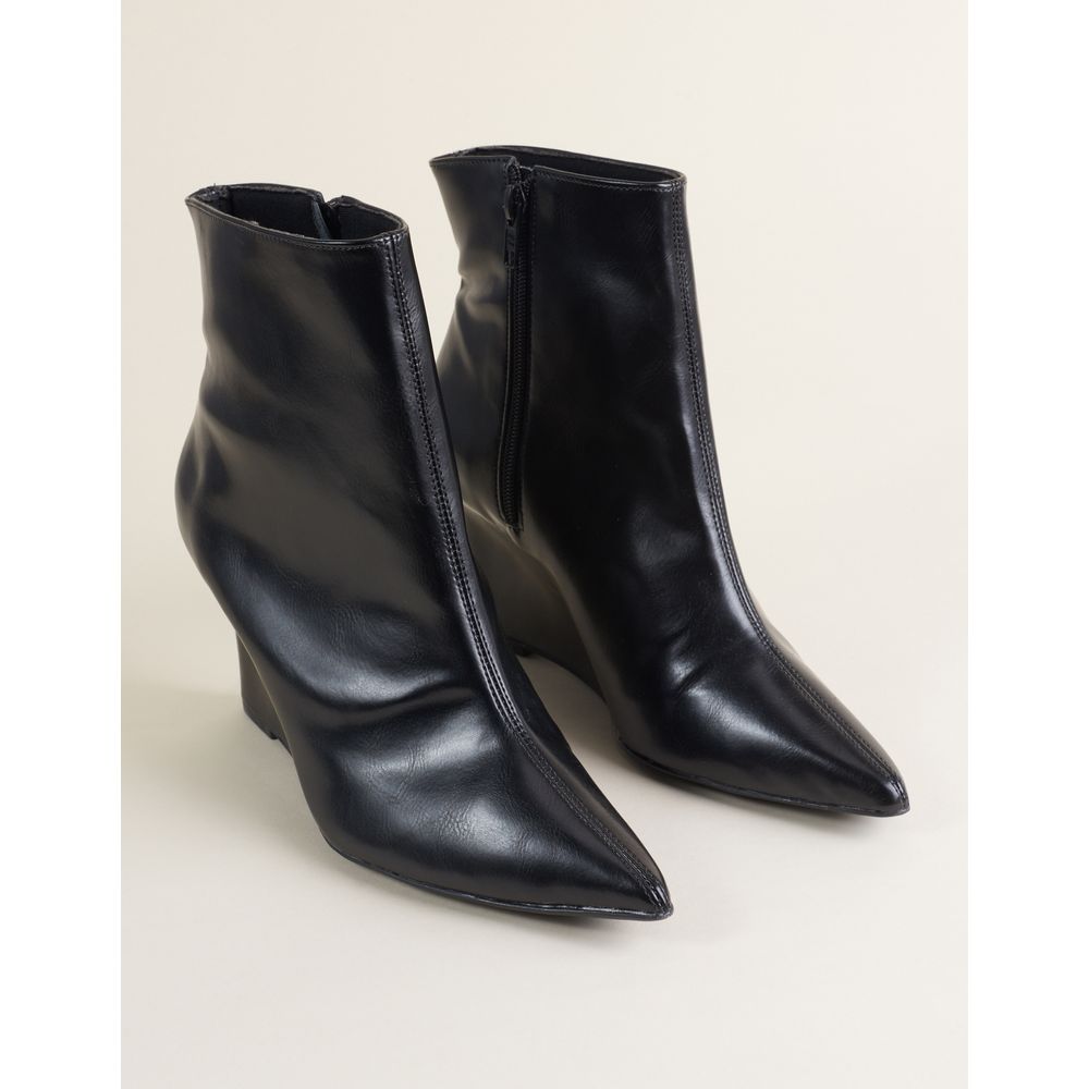 Bota com salto anabela e cano curto, confeccionada em material soft encerado. O design alonga a silhueta sem abrir mão do conforto, trazendo um visual moderno e versátil para o dia a dia. Altura do salto: 9,5 cm.