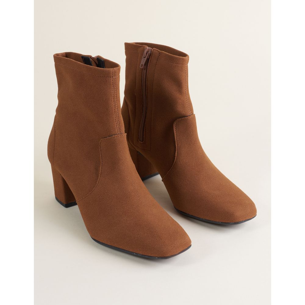 Bota de cano curto confeccionada em camurça soft, trazendo textura e um visual elegante. Possui salto bloco médio que garante mais estabilidade no uso e fechamento por zíper, facilitando o calce. Altura do salto: 6 cm.