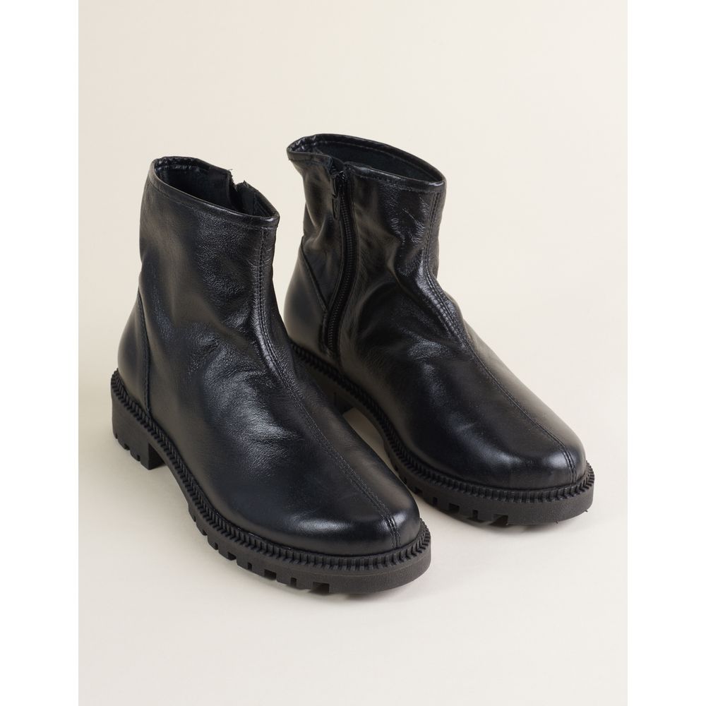 Bota De Cano Baixo Em Couro Com Solado Tratorado - Preto