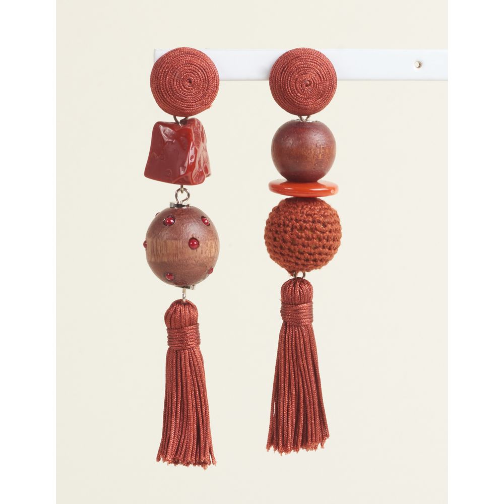 Brinco Longo Descasado Detalhe Madeira e Crochet - Camel - U