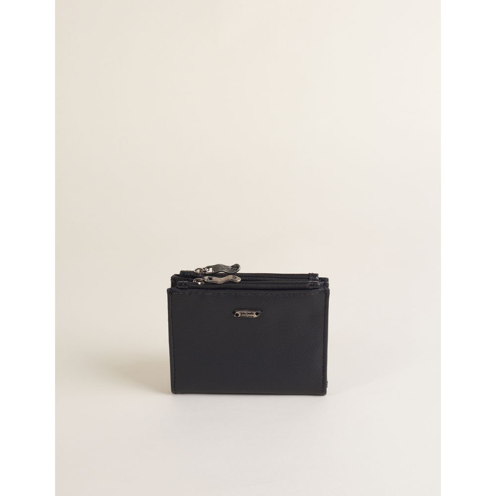 Carteira de couro com fechamento por zíper. Com divisões internas para cartões e documentos. Assinatura Via Mia em metal.