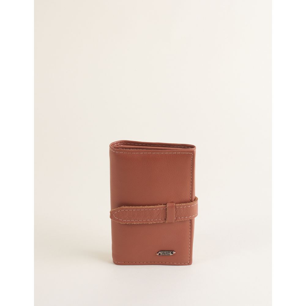 Carteira grande em couro, com divisões para cartões, compartimento para cédulas e bolso interno com fechamento por zíper para maior organização. Fechamento por lingueta, além de forro interno e assinatura Via Mia em metal, que finalizam o modelo com identidade.