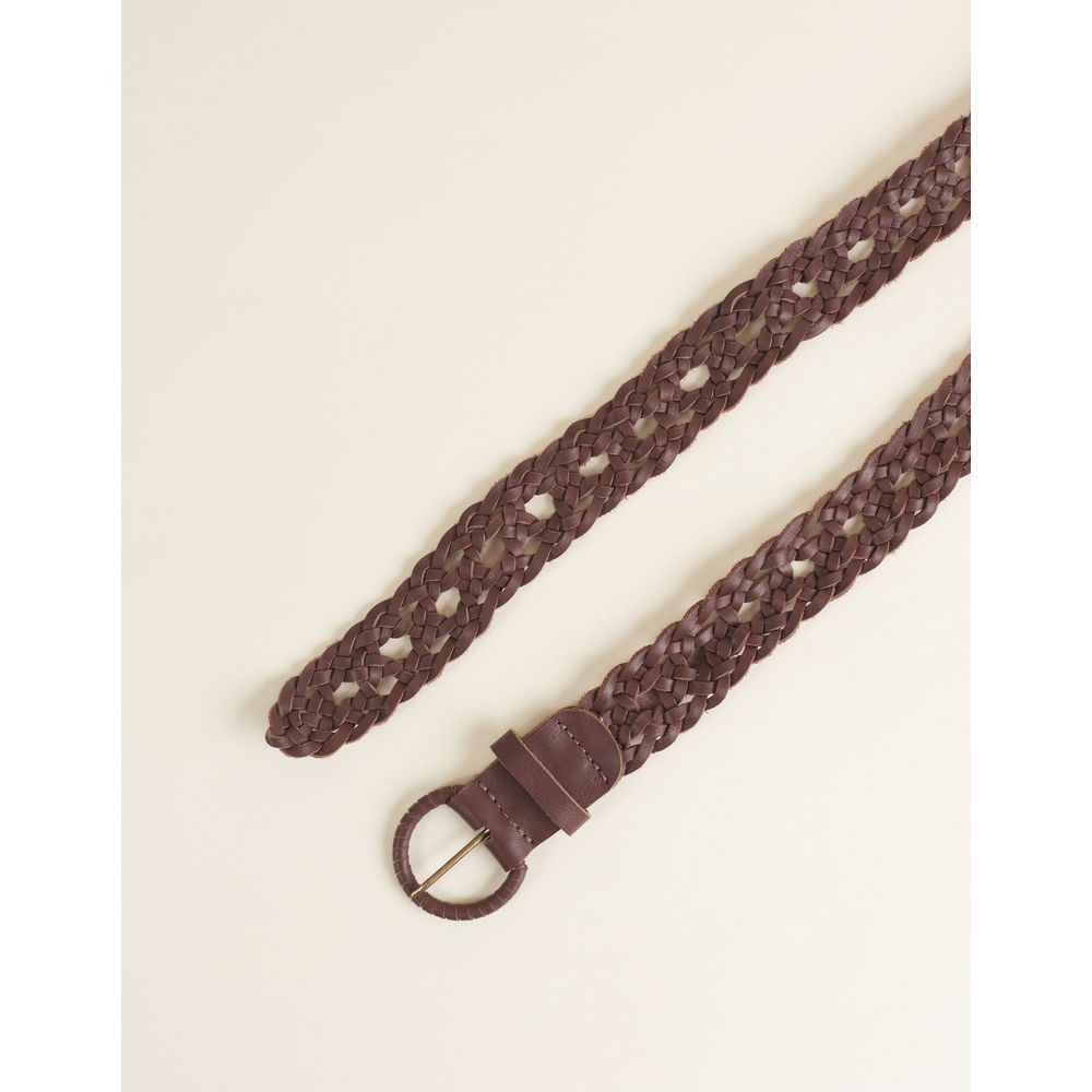 Cinto em couro trançado, que adiciona textura e personalidade ao visual. Possui regulagem por fivela encapada em couro, garantindo acabamento uniforme e um toque sofisticado ao modelo.