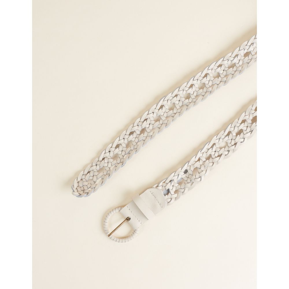 Cinto em couro trançado, que adiciona textura e personalidade ao visual. Possui regulagem por fivela encapada em couro, garantindo acabamento uniforme e um toque sofisticado ao modelo.
