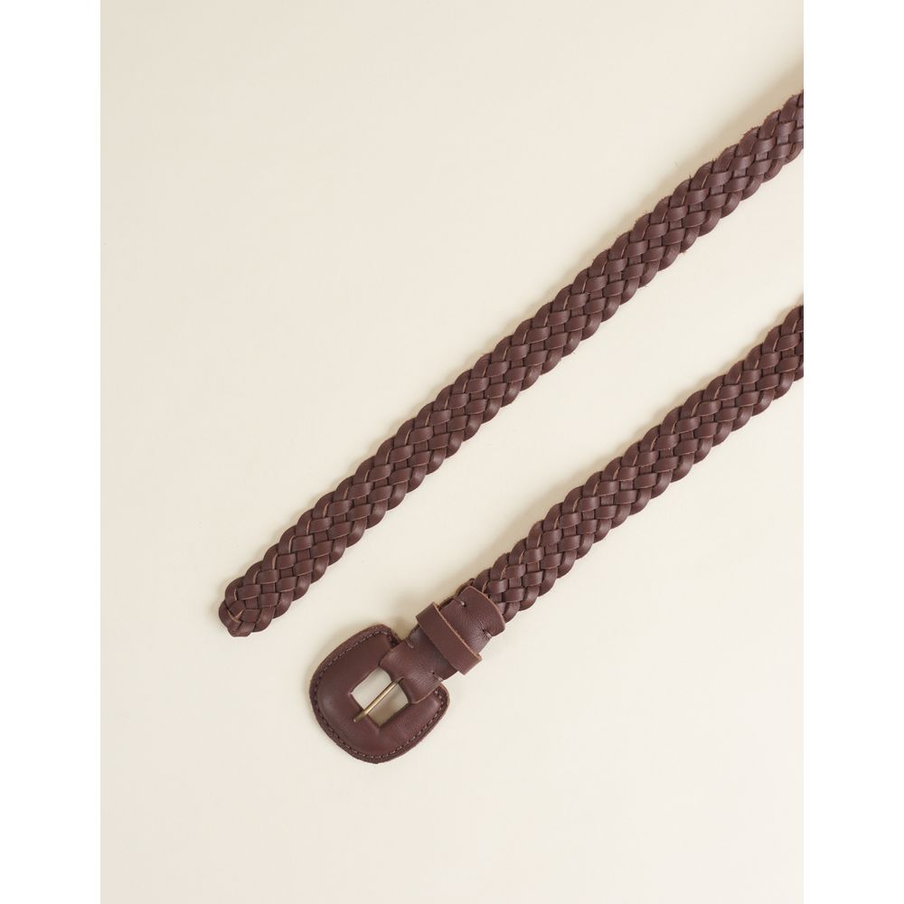 Cinto Trançado De Couro Com Fivela Forrada - Cafe