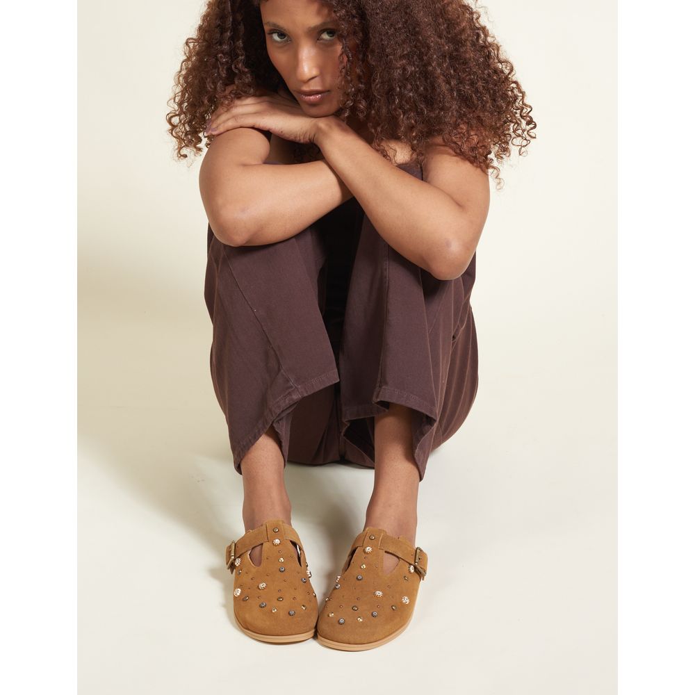 Clog Couro Camurça Com Pitangas - Amendoa