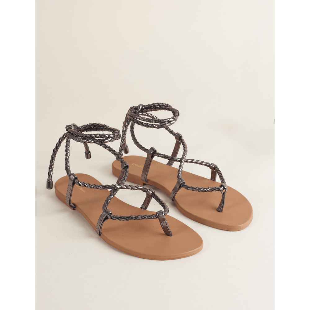 Collab Leticia Spiller + Rasteira Tranças Metalizadas - Prata Velho