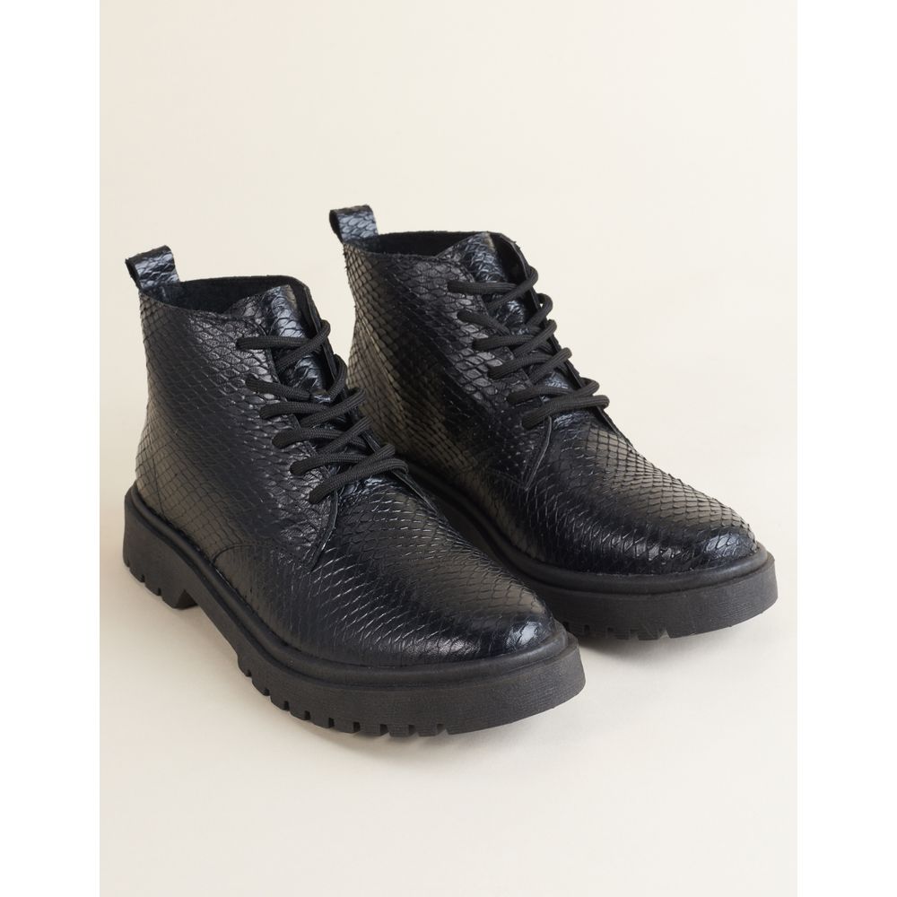 Coturno em Couro e Solado Tratorado - Preto