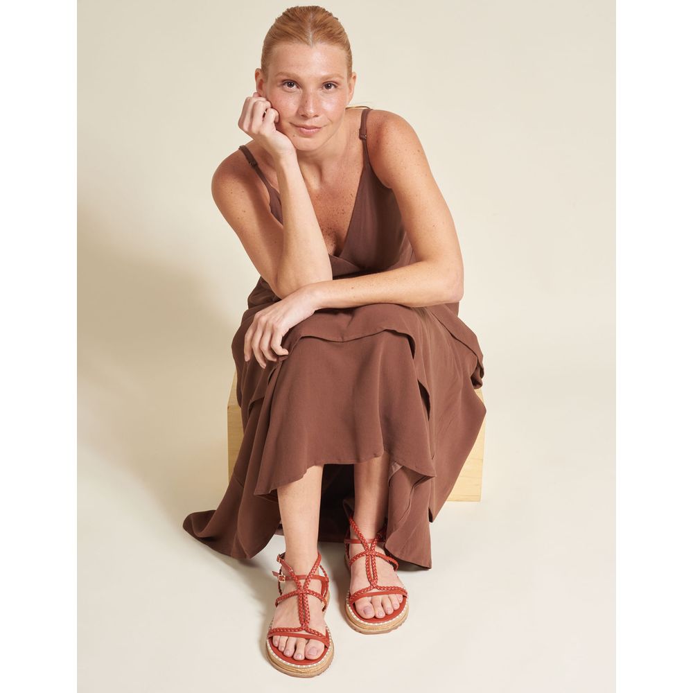 PapeteSandália esportiva com solado de EVA ou corda com salto de aproximadamente 2 cm de altura. Na Via Mia, essa construção está incluída na linha de Rasteira Fashion.